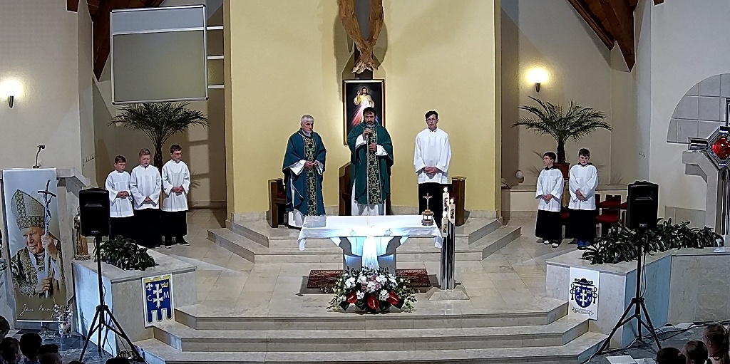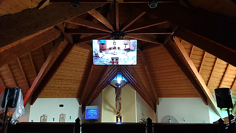 Novozvolená Pastoračná rada farnosti na svojom prvom zasadaní zo dňa 23. 4. 2018 odsúhlasila okrem iných návrhov aj návrh správcu farnosti nainštalovať monitor v priestoroch chóru pre lepšiu viditeľnosť sanktuária a projekciu textov piesni. Je samozrejme, že k tomu je potrebné nainštalovanie kamerového systému. Viac krát som počúval názory veriacich zvlášť chlapov o túto možnosť. V blízkej budúcnosti chceme cez webovú stránku farnosti sprístupniť vysielanie cez internetového providera. Pevne verím, že chlapi nám budú na základe tejto pokročilej techniky pomáhať spievať. Aktuálne texty piesni budú mať pred sebou. Už sa na to teším.