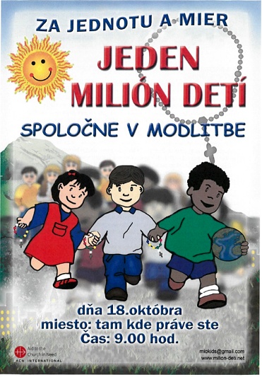 Oslovil som pani riaditeľku a pani učiteľky a požiadal ich, aby sme sa 18. 10. 2017 mohli (vo vyhlásený deň a hodinu) v kostole pomodliť svätý ruženec a tak sa zapojiť do projektu „Milión detí sa modli svätý ruženec.“ K tomuto projektu nás vyzvali aj otcovia biskupi. Do tejto akcie je zapojených 70 krajín sveta. O deviatej hodine už boli žiaci V., VI., VII., VIII., IX. ročníka v kostole a začali sme sa po úvodnom slove a príhovore kňaza modliť svätý ruženec. Deviataci sa modlili prvý desiatok slávnostného ruženca, ôsmaci druhý desiatok, siedmaci tretí desiatok, šiestaci štvrtý desiatok a piataci piaty desiatok. Som veľmi rád, že aj naši žiaci farnosti prispeli modlitbou ruženca za deti celého sveta. Slovensko sa dňa 18. októbra 2017 pripojilo k takmer 70 krajinám, kde sa deti zjednotili v modlitbe za pokoj a jednotu vo svete, v ktorom je viac ako 40 krajín sužovaných prebiehajúcim ozbrojeným konfliktom.