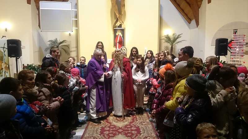 Tak, ako každoročne, aj toho roku zavítal do našej farnosti sv. Mikuláš a prišiel medzi nás. Deťom som v nedeľných oznamoch pripomenul sviatok sv. Mikuláša i to, že zajtra, v pondelok 5.12.2016 príde medzi naše deti, ktoré si zaslúžia štedrosť a pozornosť tohto svätca. Je úžasné, že hoci deti vedeli, že príde po večernej sv. omši, neleňošili a prišli aj na rorátnu sv. omšu v plnom nasadení a peknom počte. Večer prišli ešte raz na sv. omšu a pre mikulášsky darček. Po sv. omši sa zhasli svetlá a čakali sme kedy príde. Keď dorazil, deti sa mu pozdravili a modlitbou ho privítali. Niečo Mikuláš povedal o sebe, deti mu ešte niečo zaspievali a potom prišlo to najdôležitejšie – darčeky. Mikuláš rozdal 130 darčekov a ku každému dieťaťu bol štedrý. Pri osobnom odbere darčeka dieťaťom, poznačil Mikuláš dieťa krížikom. Deti mu sľúbili, že budú dobré a budú sa veľa modliť. Mikuláš sa pre veľkú zaneprázdnenosť ponáhľal k deťom iných farnosti. O tom, že mne osobne robia deti veľkú radosť a zvlášť deti na prvom stupni, sa rozpíšem viac pri článku „Roráty v našej farnosti.“ Chcem sa poďakovať sponzorom, ktorí prispeli na tieto mikulášske darčeky. Mikulášskymi vrecúškami a čokoládami všetkého druhu v balíčku sponzoroval farský úrad Brezovica, cukríkmi, mandarínkami a lízankami prispela pani vedúca Jendrášková a za firmu CBA Verex päťdesiat eurovou poukážkou pán Frackowiak. Sv. Mikuláš, oroduj za nás!