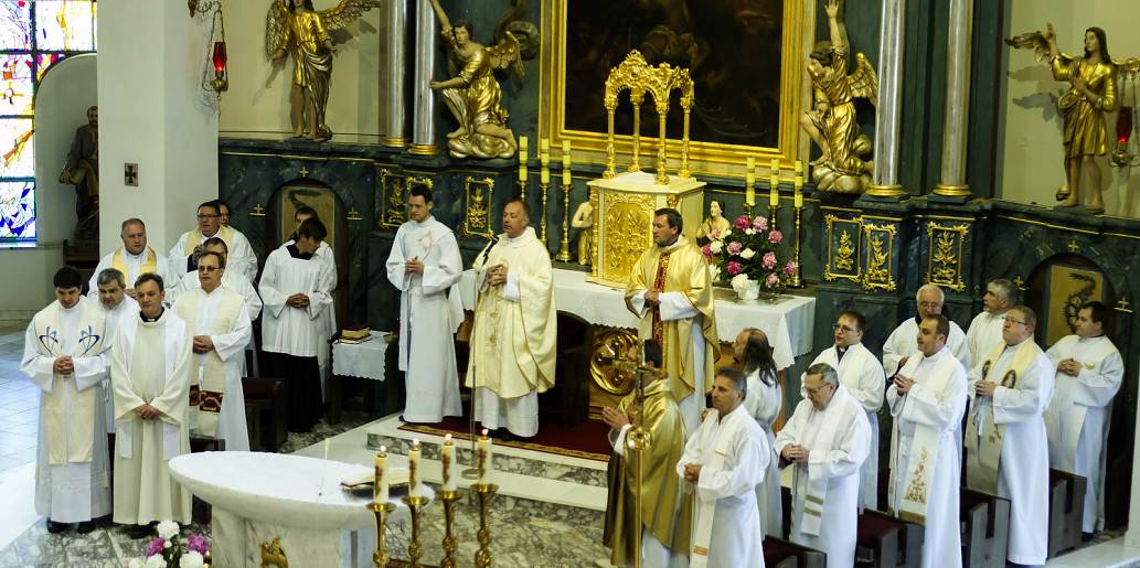V piatok 3. júna 2016 sme oslávili slávnosť Najsvätejšieho Srdca Ježišovho a zároveň Svetový deň modlitieb za posvätenie kňazov. V Bazilike minor Navštívenia Panny Márie na Mariánskej hore v Levoči bola pri tejto príležitosti o 19:45 hod. výročná celosvetová štafeta modlitby svätého ruženca za posvätenie kňazov. Modlili sa radostný ruženec. Po modlitbe nasledovala slávnostná svätá omša, ktorú celebroval spišský diecézny otec biskup Štefan. Naša farnosť sa po večernej sv. omši, zjednotila s Bazilikou minor na Levočskej hore presne o 19:45 a spolu sme sa pomodlili radostný sv. ruženec. V kostole sv. Cyrila a Metoda sa na tento úmysel modlilo asi 200 veriacich. Do tejto štafety je zapojených 60 mariánskych bazilík z celého sveta, medzi ktoré je zaradená aj naša svätyňa v Levoči. Božské Srdce Ježišovo, žehnaj a sprevádzaj našich kňazov.
